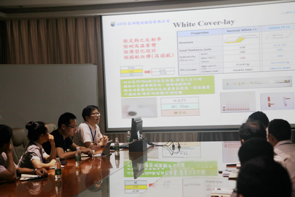 圖為FPC業(yè)界資深的專家正在講解FPC制造基材的性能和常見缺陷的解決方法。