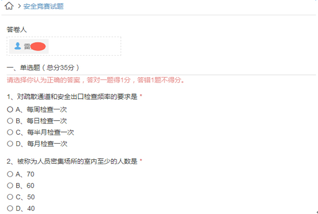 我相信再怎么難的題也難不倒學霸的你,再說了,咱們這是開卷考試,只是為了更好的普及安全知識,沒規(guī)定你不能問“度娘”??!當然,對于個別有針對性的問題,還是需要你對車間現場有一定了解才能回答。比如“公司的安全通道有幾條?”,這完全是送分題啊。