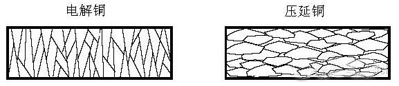 圖2 電解銅和壓延銅微粒結(jié)晶結(jié)構(gòu)示意圖
