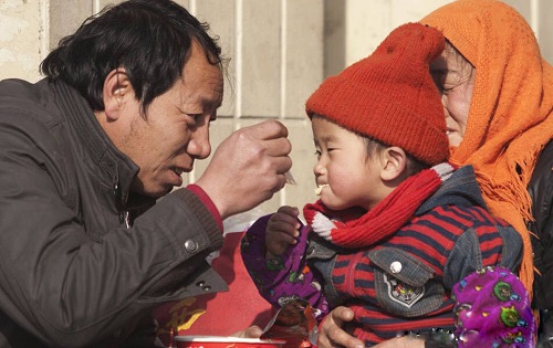 他——一個(gè)推著賣烤紅薯小車的安徽師傅,沒(méi)辦法讓女兒待家里只能放在車內(nèi)讓其依偎在火爐旁,趁生意的間隙,給女兒喂點(diǎn)東西吃……