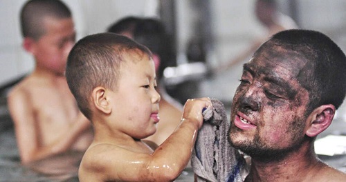 他——一個(gè)山西的礦工,臉上的黑色也掩蓋不住見(jiàn)到兒子的那份幸福與喜悅……