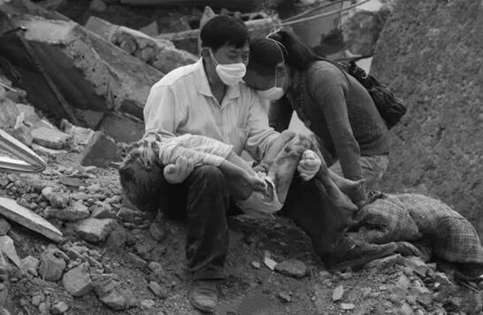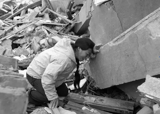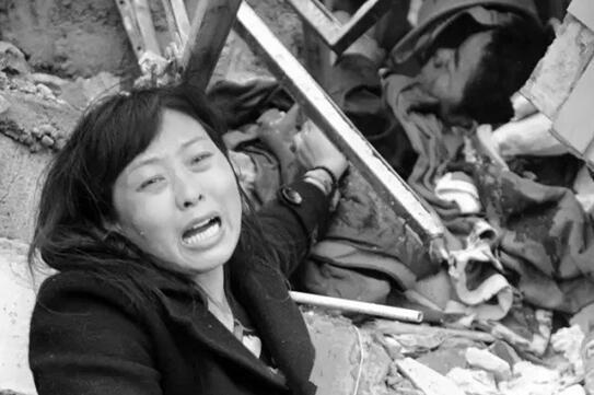 一位母親在廢墟中守護(hù)著遇難的孩子,不愿離開(kāi)。