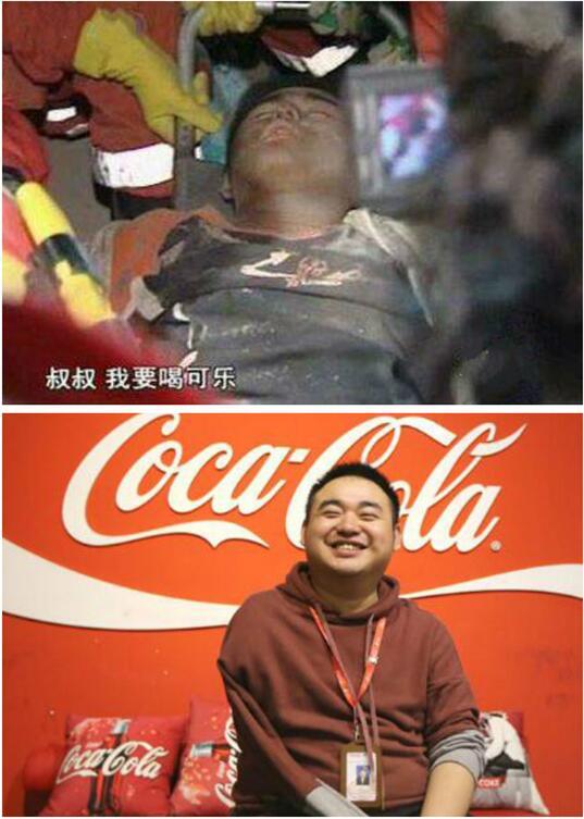 汶川大地震中,薛梟被困廢墟80個(gè)小時(shí)。他被救出后的第一句話是:“叔叔,我要喝可樂(lè),冰凍的。” 逗樂(lè)了當(dāng)時(shí)“被悲傷籠罩的中國(guó)”。如今,他已經(jīng)進(jìn)入可口可樂(lè)(四川)分公司工作。