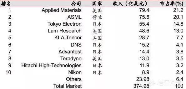 這里面美國、日本占據了絕對的優(yōu)勢,綜合來看,在整個半導體行業(yè),最厲害的還是美國和日本,因為半導體設備實在是比半導體制造還要復雜難攻的技術。