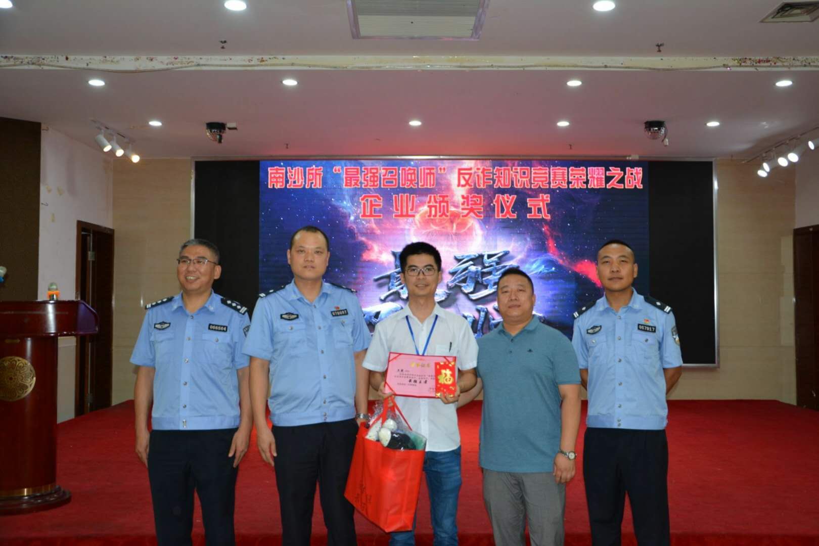 由南沙派出所副所長與深聯(lián)人事部經(jīng)理老甘共同為他頒獎,不僅如此,他的妻子在本次活動中也獲得榮譽,成為了名副其實的“反詐夫妻”,看樣子,誓將反詐騙進行到底了。