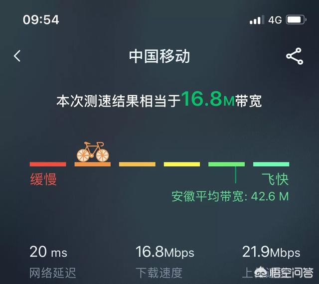 更為關(guān)鍵的我們所說(shuō)的4G網(wǎng)絡(luò)其實(shí)是3.9G,而現(xiàn)在的4G+才是真正的4G,它的下行峰值為300Mbps,上行峰值也能夠達(dá)到50Mbps。這個(gè)速度,才能滿(mǎn)足消費(fèi)者的日常使用。我們可以測(cè)試一下目前4G網(wǎng)絡(luò)的正常值,以移動(dòng)為例: