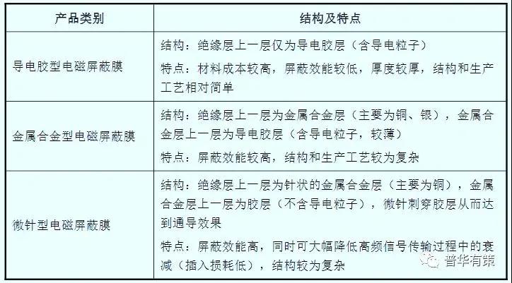 電磁屏蔽膜的類別目前,電磁屏蔽膜主要有三種結(jié)構(gòu),分別為導(dǎo)電膠型、金屬合金型和微針型。電磁屏蔽膜的類別