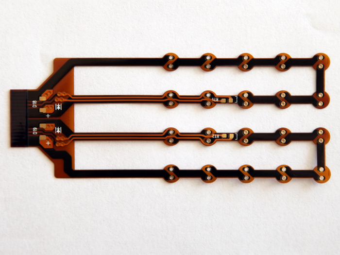 柔性電路(FPC)是上世紀(jì)70年代美國為發(fā)展航天火箭技術(shù)發(fā)展而來的技術(shù),是以聚脂薄膜或聚酰亞胺為基材制成的一種具有高度可靠性,絕佳曲撓性的印刷電路,通過在可彎曲的輕薄塑料片上,嵌入電路設(shè)計,使在窄小和有限空間中堆嵌大量精密元件,從而形成可彎曲的撓性電路。此種電路可隨意彎曲、折迭重量輕,體積小,散熱性好,安裝方便,沖破了傳統(tǒng)的互連技術(shù)。在柔性電路的結(jié)構(gòu)中,組成的材料是是絕緣薄膜、導(dǎo)體和粘接劑。