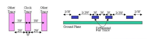 為了減少線間串擾,應(yīng)保證線間距足夠大,當線中心間距不少于3倍線寬時,則可保持70%的電場不互相干擾,稱為3W規(guī)則。如要達到98%的電場不互相干擾,可使用10W的間距。