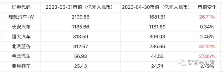 理想市值超長(zhǎng)城,僅次于比亞迪