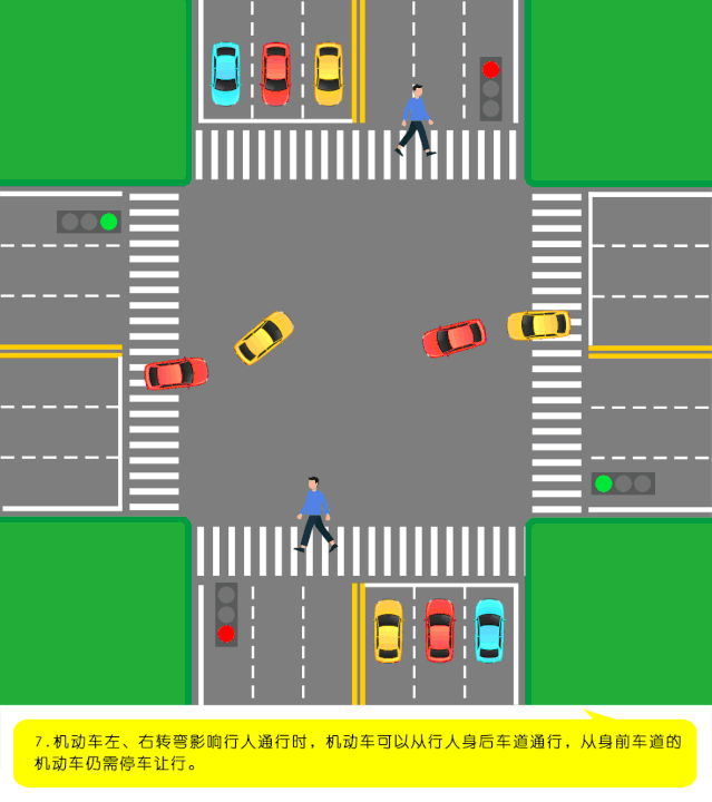 第四十七條規(guī)定,機動車行經(jīng)人行橫道時,應(yīng)當減速行駛;遇行人正在通過人行橫道,應(yīng)當停車讓行。機動車行經(jīng)沒有交通信號的道路時,遇行人橫過道路,應(yīng)當避讓。
