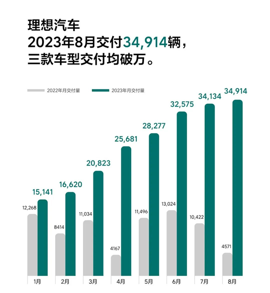 新勢力中的理想汽車穩(wěn)步提升,月銷攀升到3.49萬輛。根據(jù)理想汽車的預(yù)估,今年有希望突破單月4萬輛的銷售大關(guān)。理想一共推出3款車,分別是L7、L8、L9。這三款車沒有形成內(nèi)耗式的自卷,而是全部月銷破萬,訂單高度均衡。