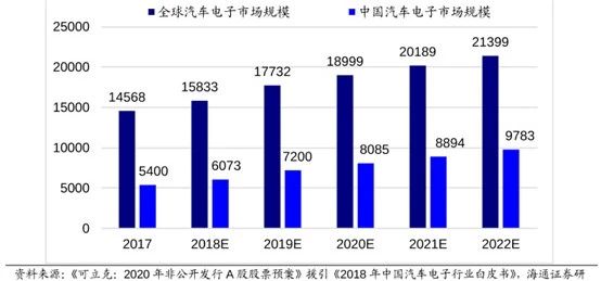 另一類是車載汽車電子裝置,包括汽車信息系統(tǒng)(行車電腦)、導(dǎo)航系統(tǒng)、汽車音響及電視娛樂系統(tǒng)、車載通信系統(tǒng)、上網(wǎng)設(shè)備等。根據(jù)2018年中國汽車電子行業(yè)白皮書公布數(shù)據(jù),全球汽車電子的市場規(guī)模破萬億,我國汽車電子市場在6000億左右,且未來增長趨勢明顯,市場可觀。