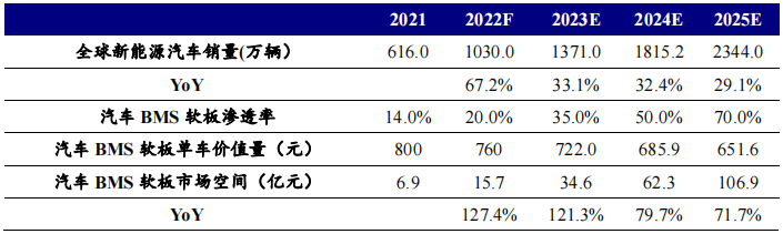 全球汽車 BMS 軟板市場滲透率提升,推動市場擴容。汽車 BMS 軟板相較于傳統(tǒng)線束具有安全性、輕量化、工藝靈活、自動化生產(chǎn)等優(yōu)勢,特斯拉、比亞迪等新能源汽車引領(lǐng) FPC 方案替代傳統(tǒng)線束,BMS 軟板方案滲透率有望持續(xù)提升,我們預(yù)計將從 2021 年的 14%進一步上升至 2025 年的 70%,假設(shè) 2021 年汽車 BMS 軟板單車價值量為 800 元/車,每年平均單價下降 5%,對應(yīng) BMS 軟板市場空間將由 2021 年的6.9 億元上升至 2025 年的 106.9 億元。