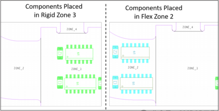 智能元件布局是將元件放置在剛性或柔性區(qū)域,并將其自動放置在該區(qū)域的最高元件層的能力。在這兩種柔性狀態(tài)下,我們還需要檢查z軸元件之間的間隙。