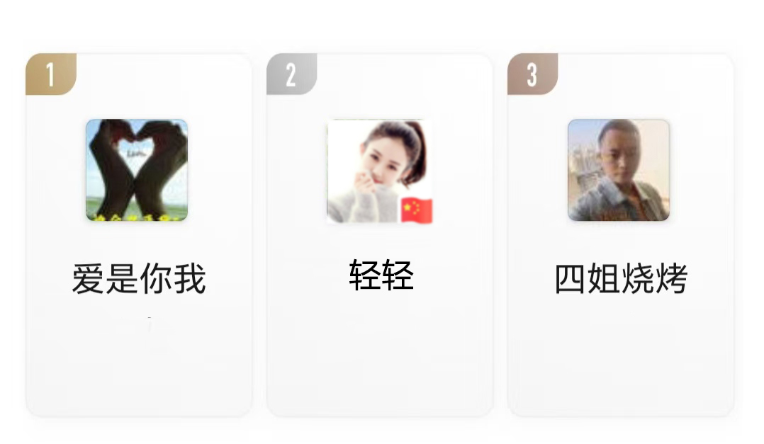 點(diǎn)贊最多前三名粉絲