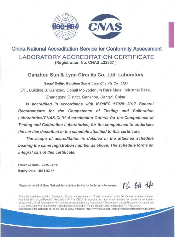 當(dāng)前位置:首頁(yè)? 深聯(lián)動(dòng)態(tài) ? 重大喜訊!深聯(lián)電路榮獲“CNAS 認(rèn)可證書”!