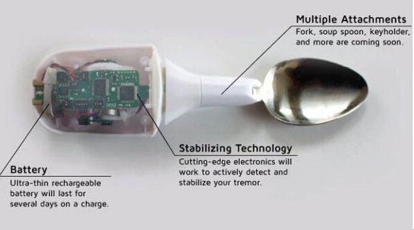 帕金森勺可通過(guò)感知和預(yù)測(cè)帕金森患者的手部抖動(dòng),對(duì)勺子的平衡進(jìn)行調(diào)節(jié)。能有效提高帕金森病人的生活質(zhì)量。這兩個(gè)設(shè)備立足于提高特定病人的生活質(zhì)量。