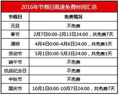 1.2016年國慶高速免費(fèi)車型: