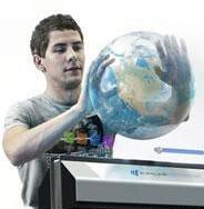 其結(jié)合了LCD平面顯示幕以及力傳感器和前后移動(dòng)屏幕的機(jī)械臂,通過(guò)控制對(duì)用戶指尖的阻力,在屏幕上模擬出物體的形狀和重量,并通過(guò)調(diào)整屏幕的位置來(lái)匹配虛擬物體的輪廓,讓人感覺(jué)到物體的形狀,然后,計(jì)算機(jī)會(huì)調(diào)整屏幕上圖像的大小和角度,形成3D效果,用戶通過(guò)特殊眼鏡來(lái)獲得立體視覺(jué)效果。