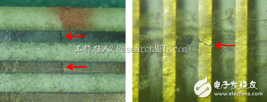 比較難的是從最末端的金手指可以量測到開/斷路,卻怎么也找不到銅箔斷裂的位置,找不到位置,就難以確認(rèn)是什么原因引起的斷裂。