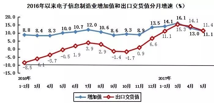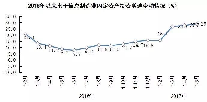 手機FPC速遞一份1-5月我國電子信息制造業(yè)運行情況:2017年1-5月份,我國電子信息制造業(yè)總體呈現(xiàn)穩(wěn)中向好的發(fā)展態(tài)勢。行業(yè)生產(chǎn)增速持續(xù)加快,出口形勢明顯好轉(zhuǎn),效益狀況總體良好,固定資產(chǎn)投資加快增長,企業(yè)虧損面繼續(xù)收窄。