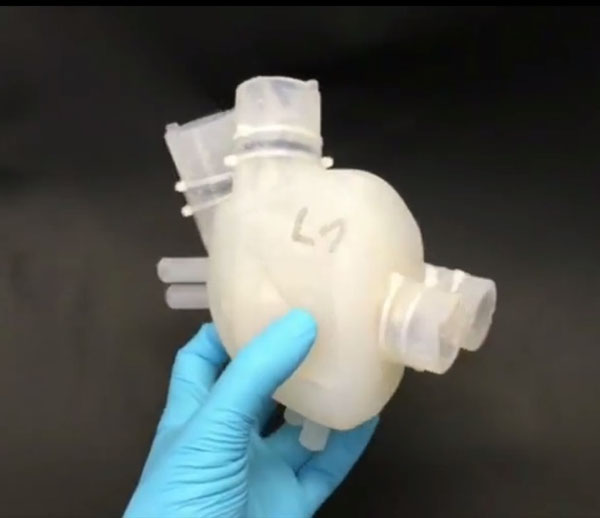據(jù)報(bào)道說(shuō)這種人造心臟使用柔軟硅膠材料,由3D打印和失蠟鑄造技術(shù)制作而成,它重390克,比正常的心臟多80克。容積為679立方厘米,其里包含一個(gè)內(nèi)部結(jié)構(gòu)復(fù)雜的硅膠整體,跟活體心臟一樣有一個(gè)右心室和一個(gè)左心室,還有一個(gè)額外腔室將兩個(gè)心室隔開。這個(gè)腔室起著類似肌肉的功能,能像泵一樣驅(qū)動(dòng)血液進(jìn)出心臟。