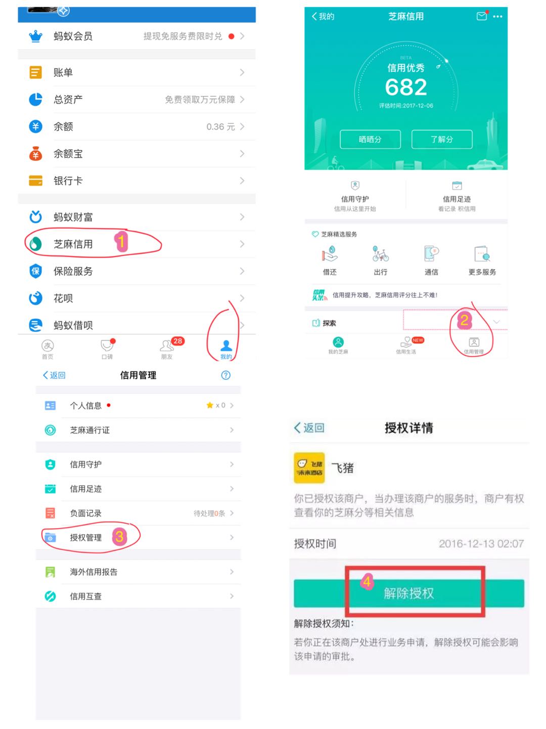 當點完第三步的時候,你就會發(fā)現(xiàn)你的芝麻信用已經(jīng)授權(quán)給了誰、誰、誰了。然后把每個商戶點開之后,均可以看到第四步再點解除授權(quán)就好了!