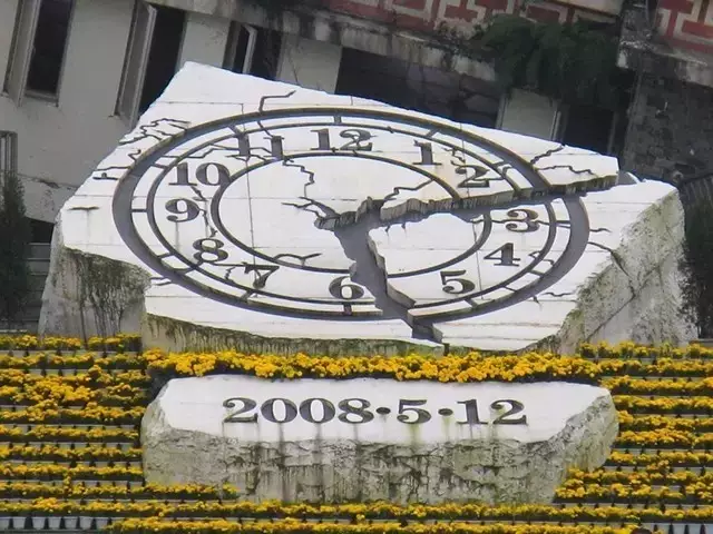 2008年5月19日14時(shí)28分,成都天府廣場(chǎng)降半旗志哀,四川省萬(wàn)余人為汶川大地震遇難者默哀3分鐘。