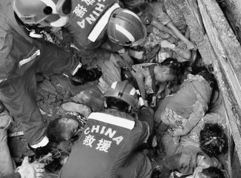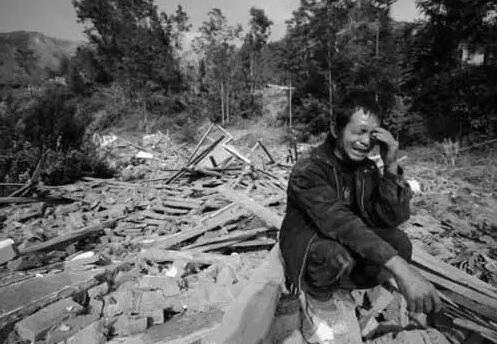 一位母親在廢墟中守護(hù)著遇難的孩子,不愿離開(kāi)。