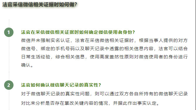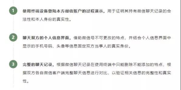 對此,廣州市南沙區(qū)法院表示,為保證聊天記錄證據(jù)的合法有效,當事人提交微信相關證據(jù)需注意以下三方面:
