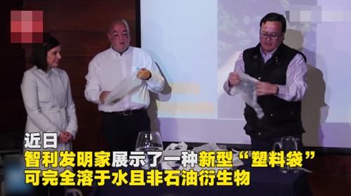 智利發(fā)明家展示了一種新型“塑料袋”——完全溶于水且非石油衍生物。