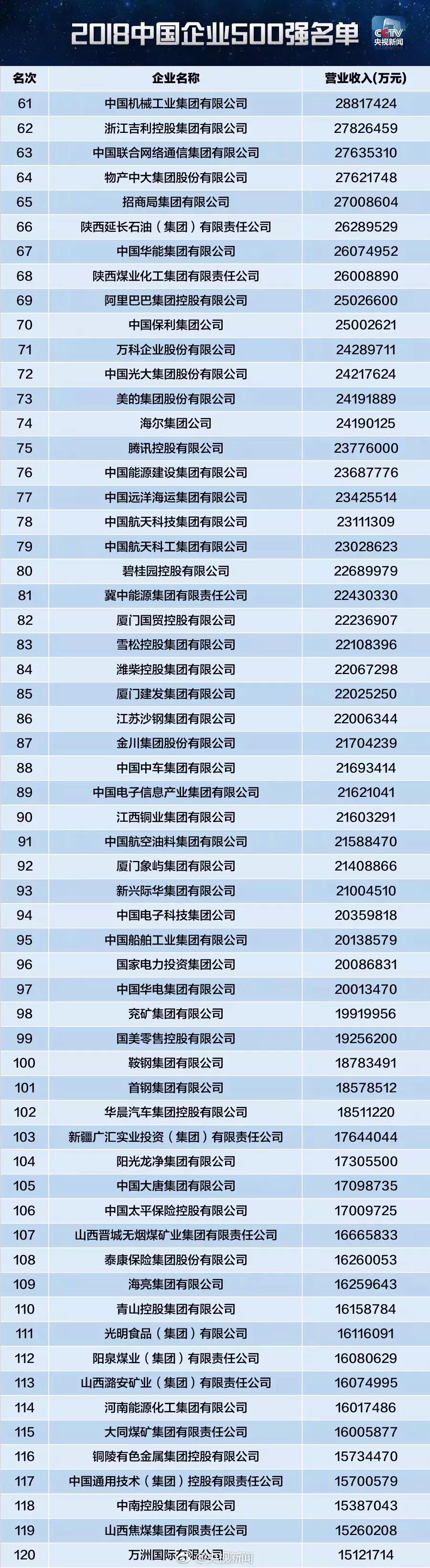軟板之2018中國(guó)企業(yè)500強(qiáng)新鮮出爐!