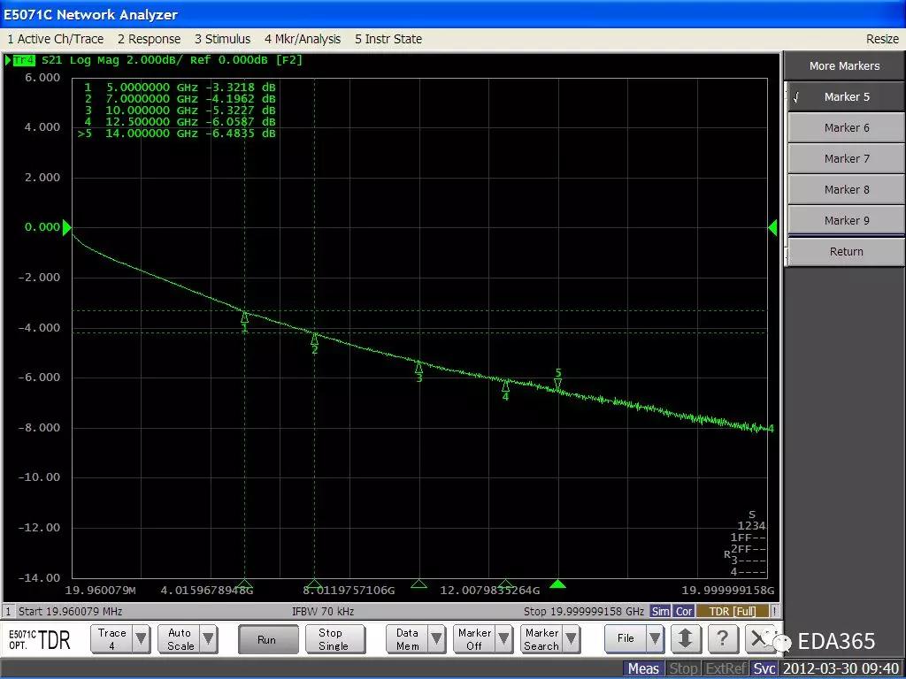 同樣線寬表面覆膜微帶線的S21好于不蓋膜情況,所以覆膜是必要的,同樣的問題,覆膜的材料等不一樣同樣的思考,也會帶來信號損耗的不一樣。這個結(jié)論和信號線走內(nèi)層同樣的線寬損耗小很多一個道理。