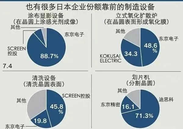 據(jù)軟板廠了解,東京電子在涂布顯影設(shè)備上的份額就占到近9成。在清除晶圓垃圾及污物的清洗設(shè)備上,日本企業(yè)的份額超過6成。后制程設(shè)備的劃片機(jī)方面,迪思科(DISCO)擁有7成份額。
