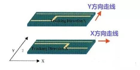 輸入和輸出端的導(dǎo)線應(yīng)盡量避免相鄰平行。在 PCB 布線時,相鄰層的走線方向成正交結(jié)構(gòu),避免將不同的信號線在相鄰層走成同一方向,以減少不必要的層間竄擾。當 PCB 布線受到結(jié)構(gòu)限制(如某些背板)難以避免出現(xiàn)平行布線時,特別是在信號速率較高時,應(yīng)考慮用地平面隔離各布線層,用地線隔離各信號線。相鄰層的走線方向示意圖如下圖。