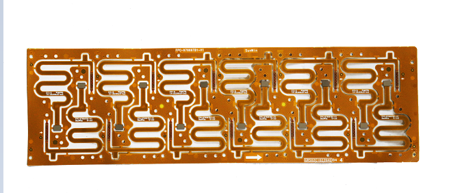 型 號:RM01C00187A層 數(shù):1板 厚:0.12mm材 料:單面有膠電解銅 厚:1/2 OZ表面處理:沉金2微英寸最小線寬/線距:0.1mm/0.08mm特 點(diǎn):外形復(fù)雜