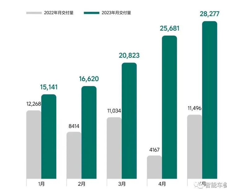 截止到2023年5月31日,理想汽車?yán)塾?jì)交付量為363876輛。作為對(duì)比,同樣是截止到今年5月底,蔚來(lái)累計(jì)交付333410輛,小鵬累計(jì)交付291525輛。