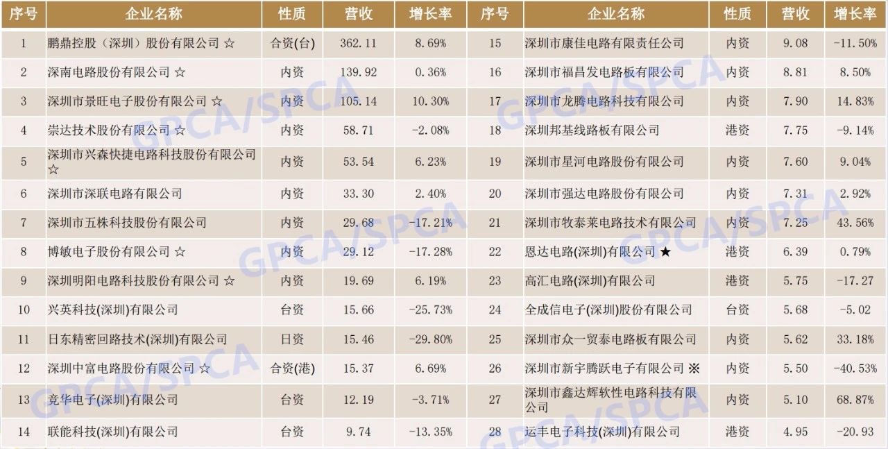 2022年深圳市營收億元以上的電路板企業(yè)