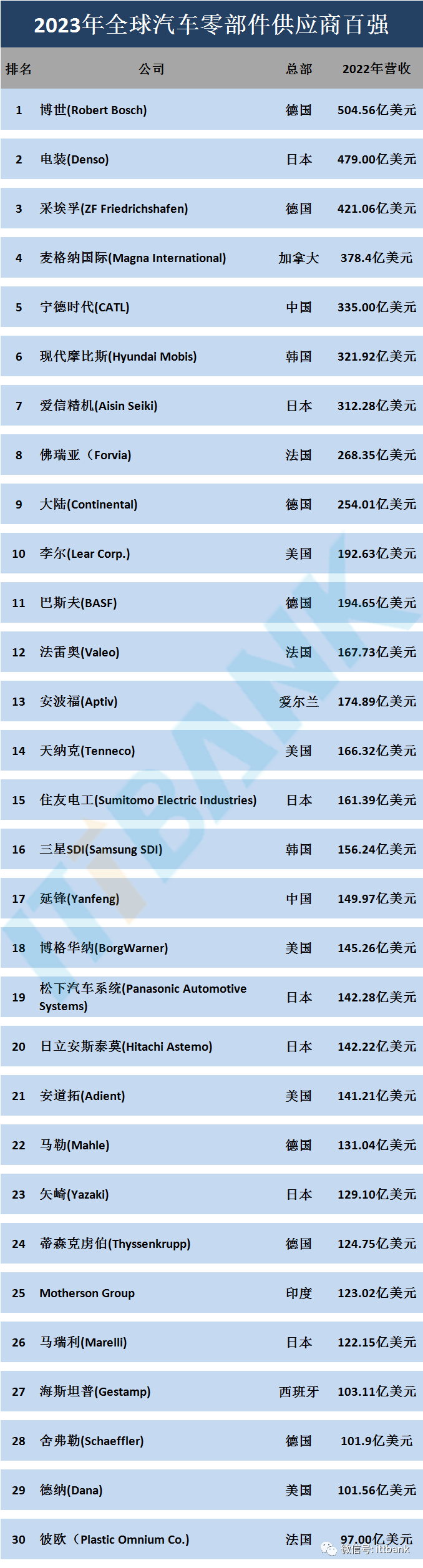 柔性線路板廠之2023全球汽車零部件供應(yīng)商百強(qiáng)出爐TOP100