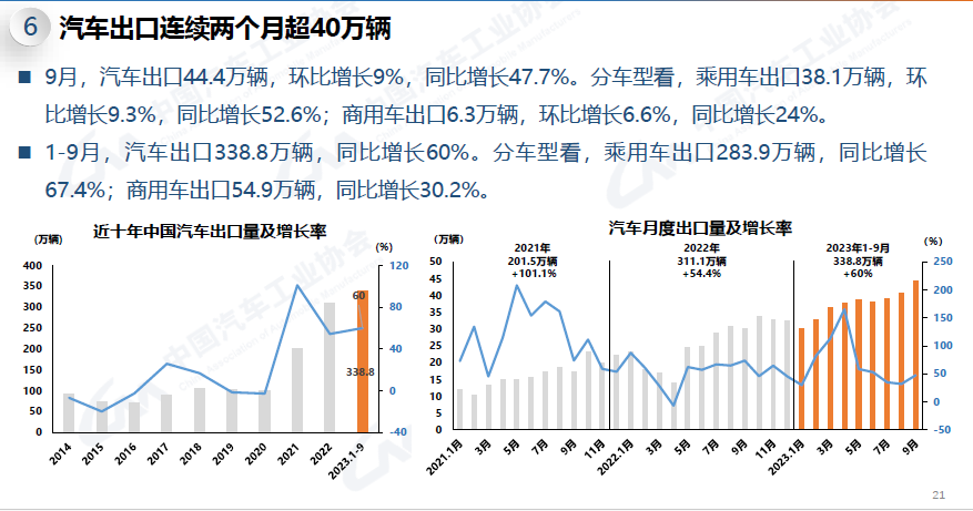 9月,汽車產(chǎn)銷分別達(dá)到285萬輛和285.8萬輛,環(huán)比均增長10.7%,同比分別增長6.6%和9.5%,產(chǎn)銷量均創(chuàng)歷史同期新高。1-9月,汽車產(chǎn)銷累計(jì)完成2107.5萬輛和2106.9萬輛,同比分別增長7.3%和8.2%。預(yù)計(jì)伴隨各項(xiàng)促消費(fèi)、穩(wěn)增長政策持續(xù)落地,效應(yīng)不斷累積,將對四季度汽車市場形成有力支撐,有助于實(shí)現(xiàn)全年穩(wěn)增長目標(biāo)。