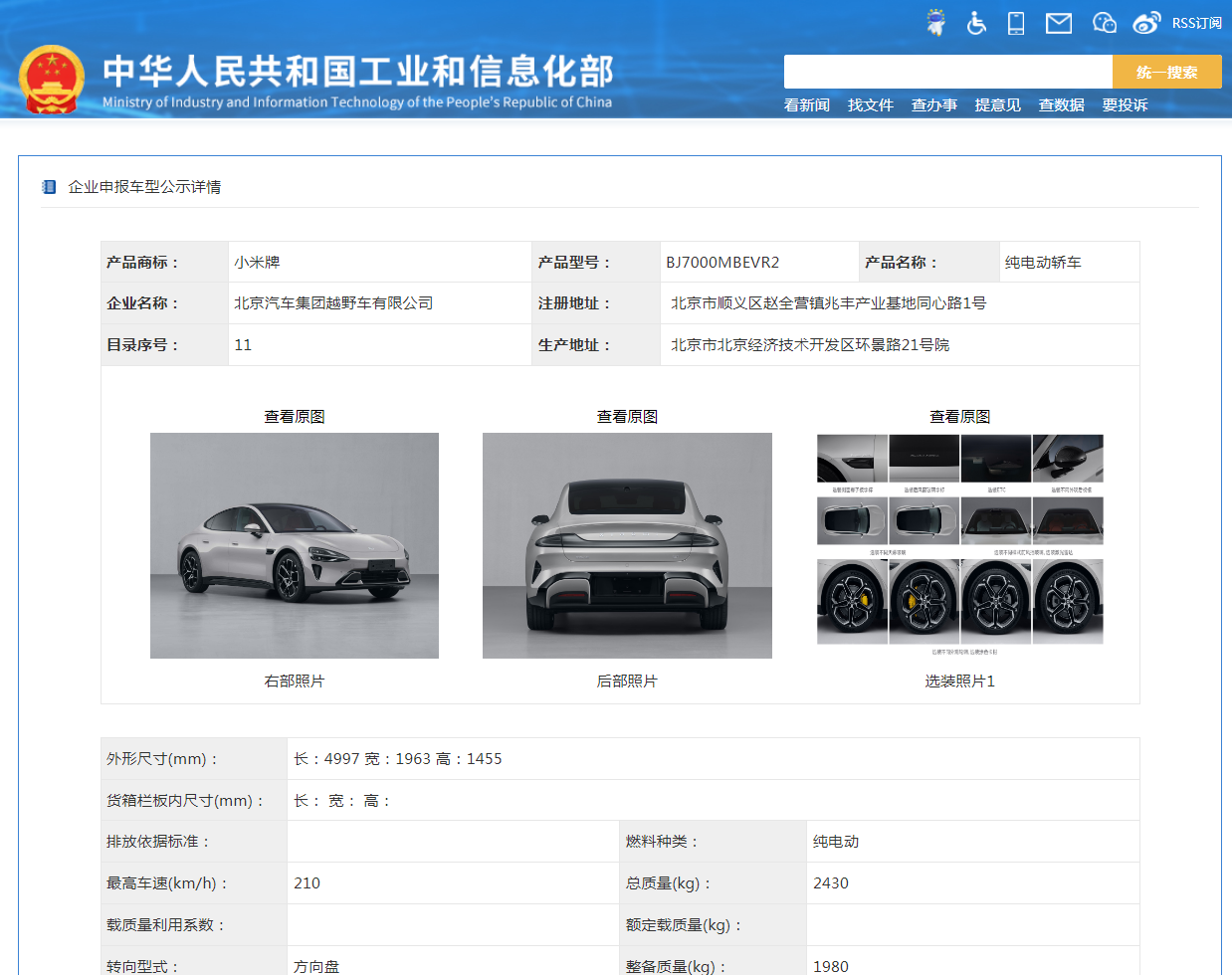公告顯示,名單中有兩款小米牌純電動轎車,型號分別為BJ7000MBEVA1、BJ7000MBEVR2,企業(yè)名稱為北京汽車集團(tuán)越野車有限公司。這也意味著,北汽越野車公司成為小米汽車的代工方。北汽越野車公司系北京汽車集團(tuán)有限公司全資子公司,實際控制人為北京市國資委。