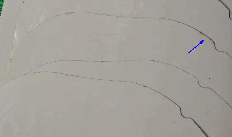 但激光在切割時(shí)因溫度太高,會(huì)將PI膜燒蝕成碳粉,并反濺到板子邊緣上,形成碳粉殘留,且不易清除,影響外觀,且激光切割效率較低,成本較高,不適合大批量板。