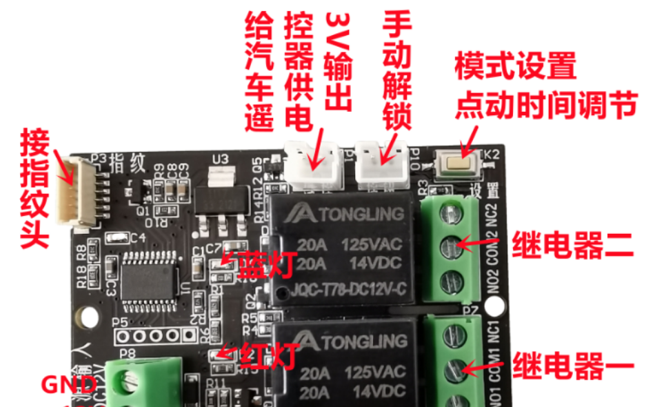 3.錄制的指紋信息和設(shè)置的點(diǎn)動時間、繼電器模式等斷電后不會丟失。